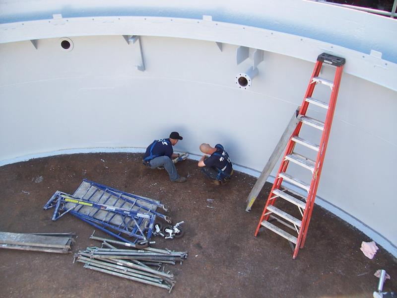 The local ENECON Northeast Engineering team was called in to provide a fast, cost effective solution. The tank was first blasted, followed by DurAlloy repairsto severely pitted areas. This was followed by an application of two coats of CHEMCLAD SC.