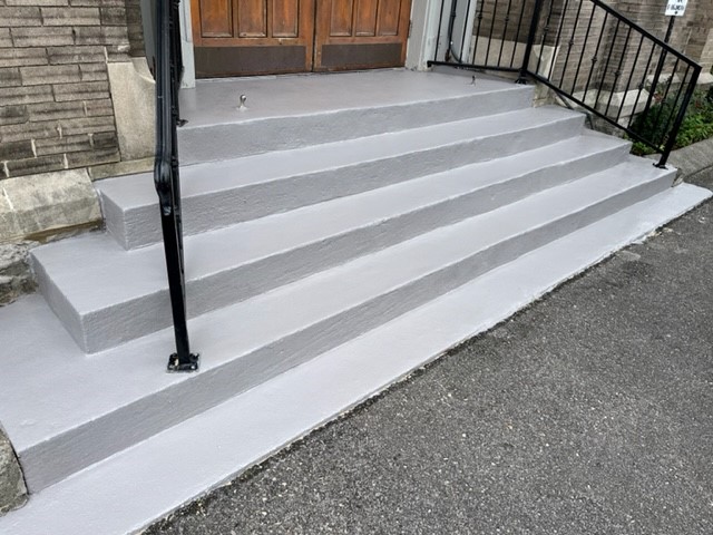 The steps were then coated with two coats of CHEMCLAD GP with a very fine pumice grit back-rolled in for added slip resistance.
