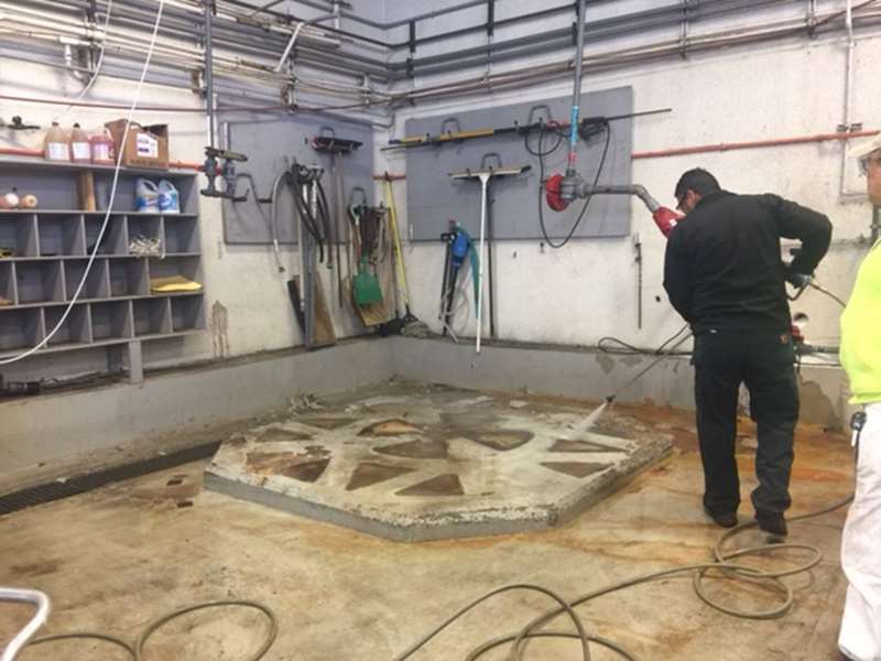 ENECRETE DuraFill was mixed with common silica sand and then poured into the forms. After the DuraFill cured, CHEMCLAD XC with non-skid aggregate was applied to protect the pad from any wastewater spillage.