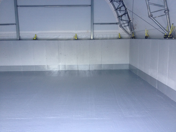 The solution was to use ENECRETE® DuraQuartz™ and build a curb to divert the water from entering the below-grade gym. ENESEAL® HR was used to seal the leaks in the walls. The solution was graded A+.